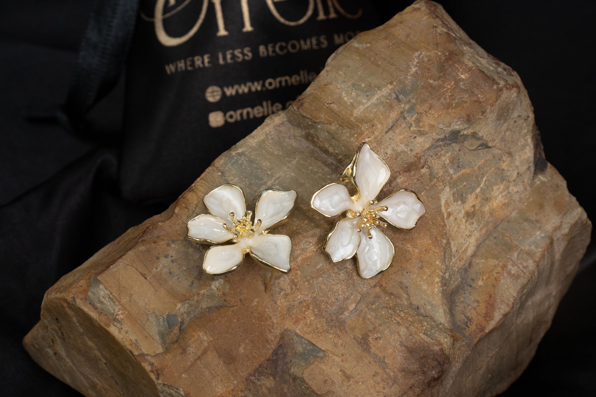 White Enamel Flower Earrings - O34